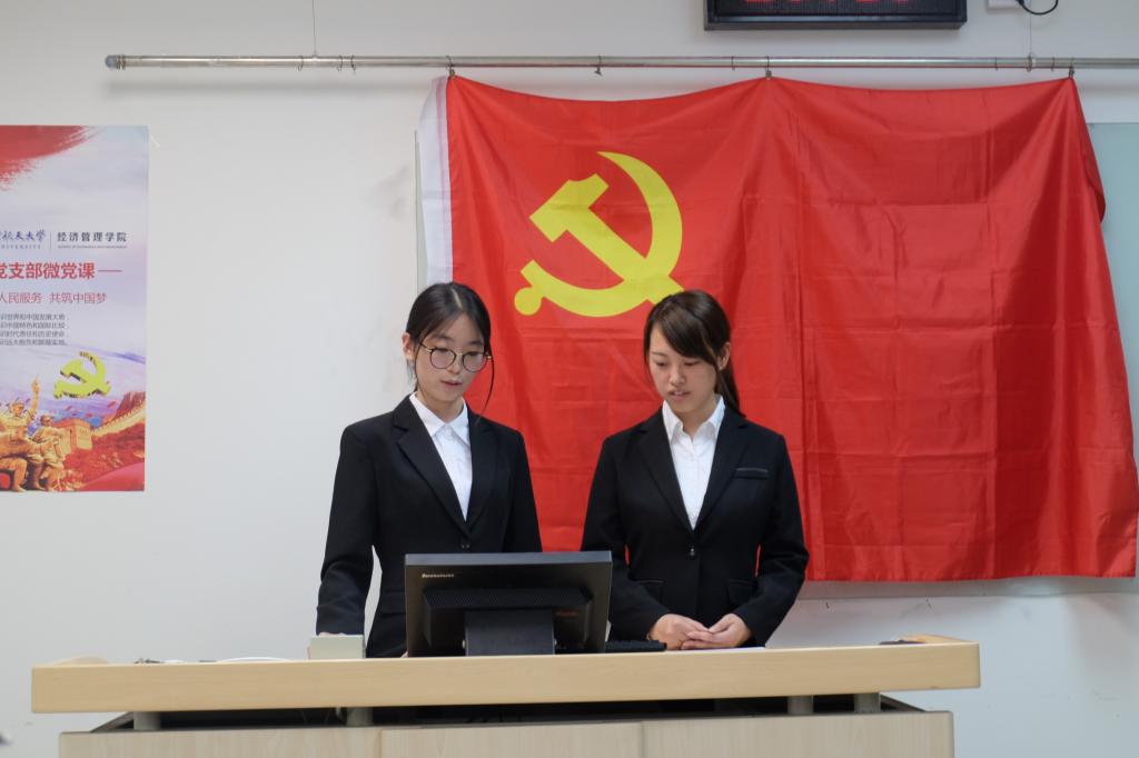 丁得彬和徐璐同志作为第一组主讲人拉开了此次党课的序幕,该学习小组的展示主题为正确认识时代责任和历史使命。丁得彬同志认为,当前中国青年的时代责任与历史使命就是把个人的追求与党和国家推进现代化建设的伟大事业结合起来。随后又从金融工作、金融市场、金融行业的独特性等角度,从所学专业出发阐述了自己眼中的使命与责任。徐璐同志通过“新时代对能源发展的要求”、“能源问题”以及“构建新时代能源体系”这三个模块,以自身为例阐述了员工党员的未来重担。在提问环节,主讲人也与观众展开了热烈的互动。最后,王晨同志总结该小组的展示,她认为上学期支部党课从宏观角度诠释了四个正确认识,该小组从专业背景、客观现实出发,在上学期的基础上深入研究并思考,为其他同志树立了很好的榜样。此外,青年员工们将是两个一百年奋斗目标完成的见证者,王晨同志鼓励大家要结合现实深入思考,不断反省自身,早日成为国家的栋梁之材。