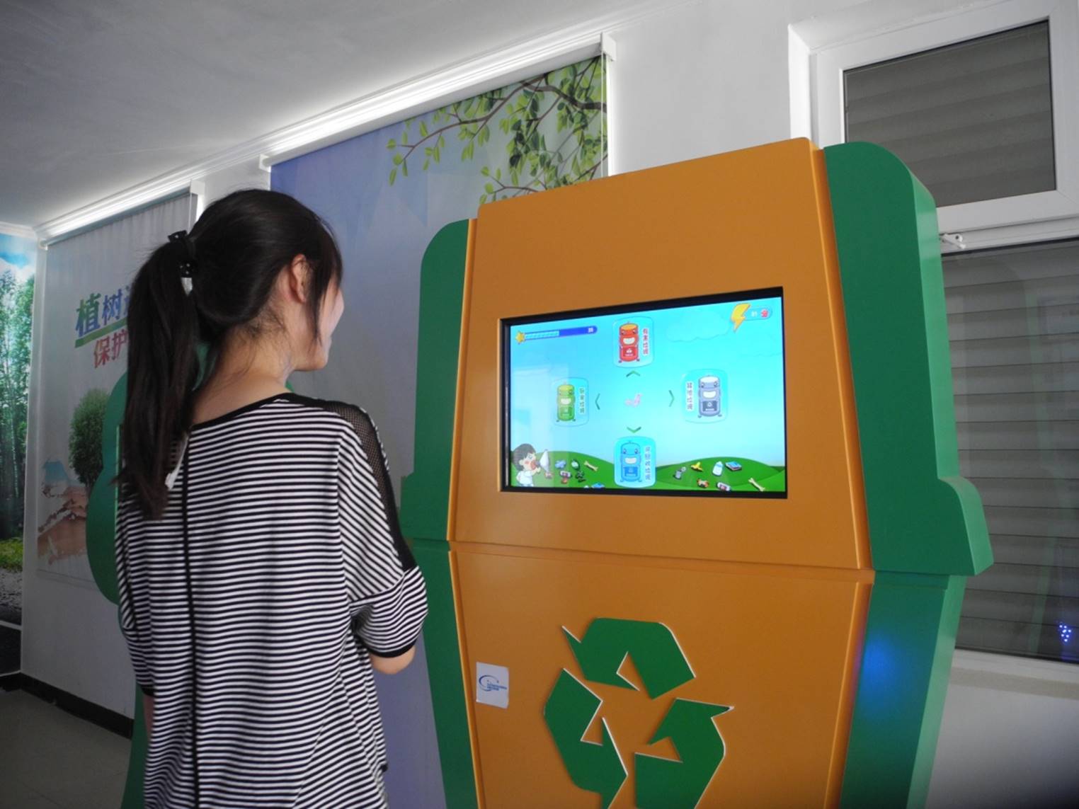 之后我们参观了漷县村的科普体验厅。漷县村市级科普体验厅是由市科委项目支持,区科委和漷县镇政府共同建设的互动体验科普展厅。项目投入60万元,是一座以宣传低碳环保、绿色生活为核心,以新能源利用、雾霾防治等与群众生活密切相关的主体性展示为补充的,集趣味性、科普性为一体的情景式互动科普体验厅,体验厅建设了84平方米的互动体验区、多媒体画廊、科普书吧以及科普培训教室。雾霾的危害、节水计算器、待机耗能值多少、冰箱节能小窍门、低碳家居……一个个项目吸引了党支部同志们,大家三三两两,通过实际的互动演示,学习与生活密切相关的科普知识。据徐书记介绍,科普体验厅的投入使用,“主要是让村民亲自参与一些互动体验项目,提高他们的节能环保意识。村委会也建立了科普体验厅管理制度,定期对村民开放,村里的孩子们在寒暑假的时候也能在这里读书、学习。”