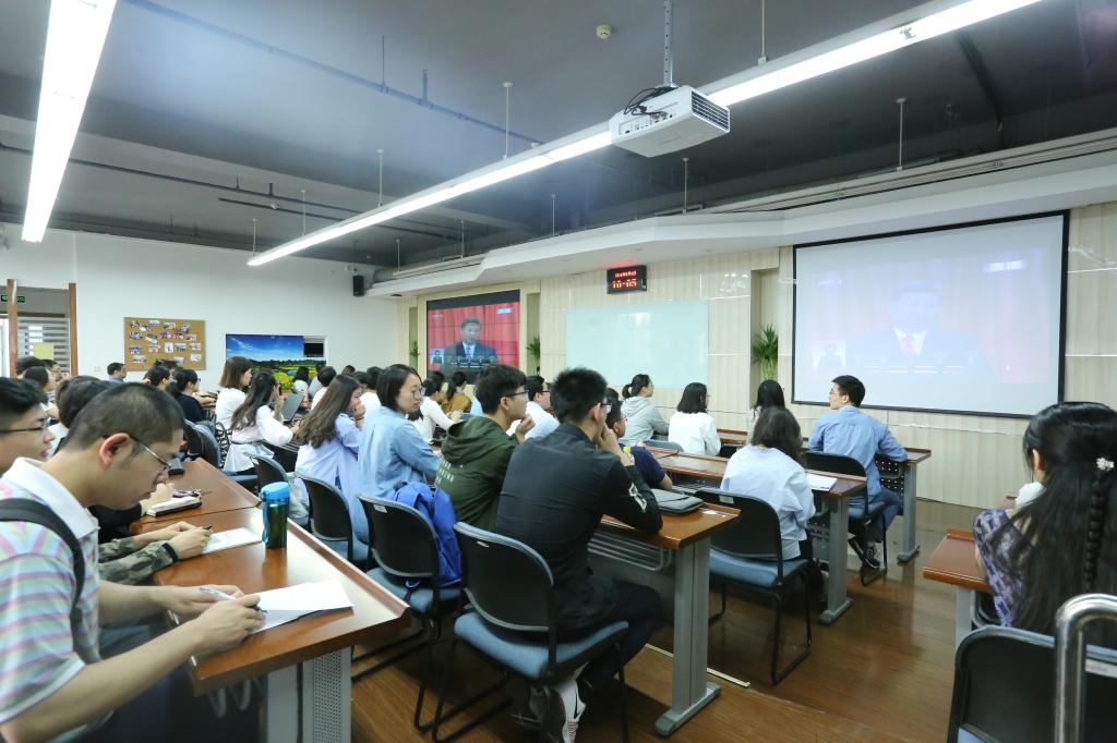 5月4日上午10:00,利来国际师生在新主楼A622教室集中收看纪念马克思诞辰200周年大会,认真聆听习近平总书记在纪念大会上的重要讲话。公司分党委书记刘志新,教工和员工支部书记,教师和员工代表等80余名师生一同观看直播。