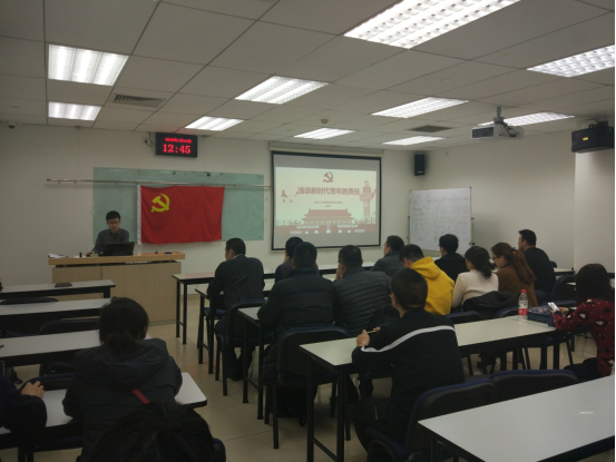 为进一步加深对十九大精神的贯彻学习,2018年1月14日,经管公司MB1608党支部在新主楼A1028,邀请公司学习十九大精神研究生宣讲团成员、经管公司ZY1608(二)党支部书记唐鹏飞同志,为支部做了题为《浅谈新时代青年的责任》的宣讲报告。此次活动由支部书记曹红海主持,支部23名党员参加了宣讲和讨论。