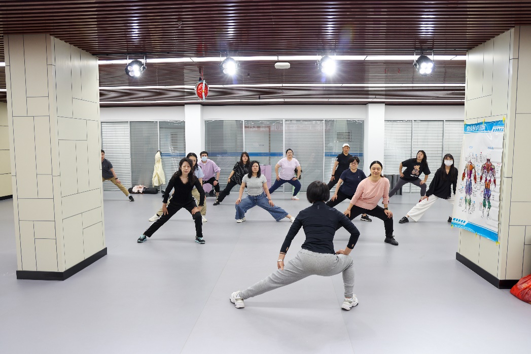 理论讲解过后,宫教授亲自带领教师们进行基础动作练习,从简单的伸展到有一定难度的力量训练,每一个动作都耐心指导。在练习过程中,针对教师们的动作,宫教授进行了针对性的指导与讲解,及时纠正错误姿势,避免运动损伤,同时分享高效燃脂训练方法,帮助大家提升运动效果。