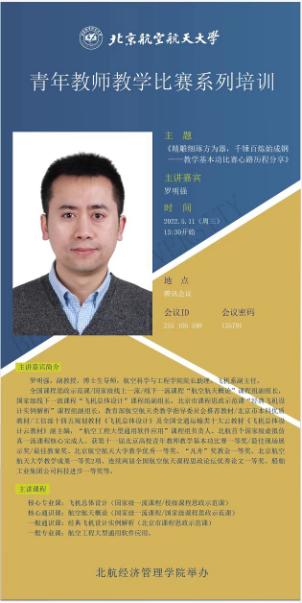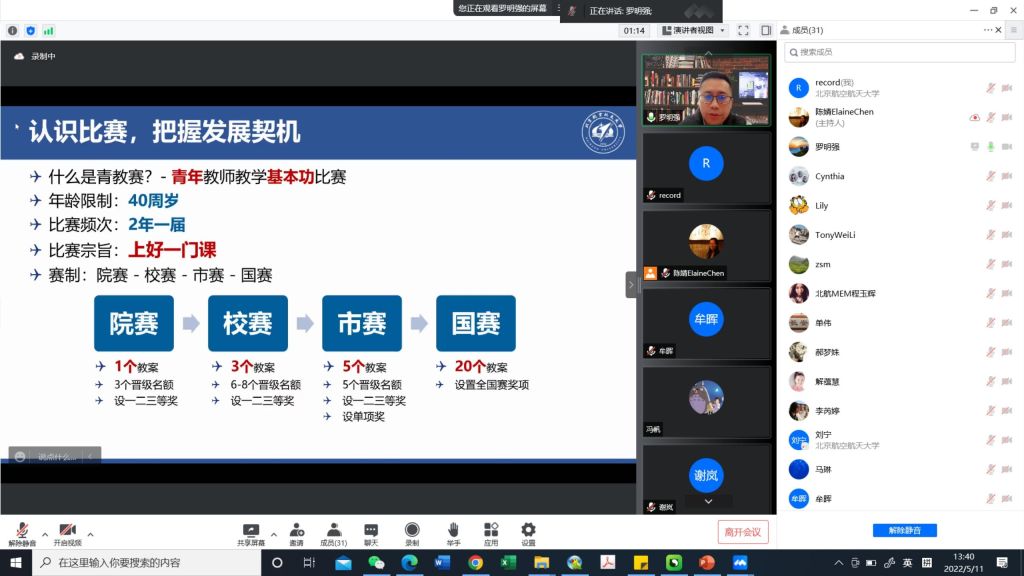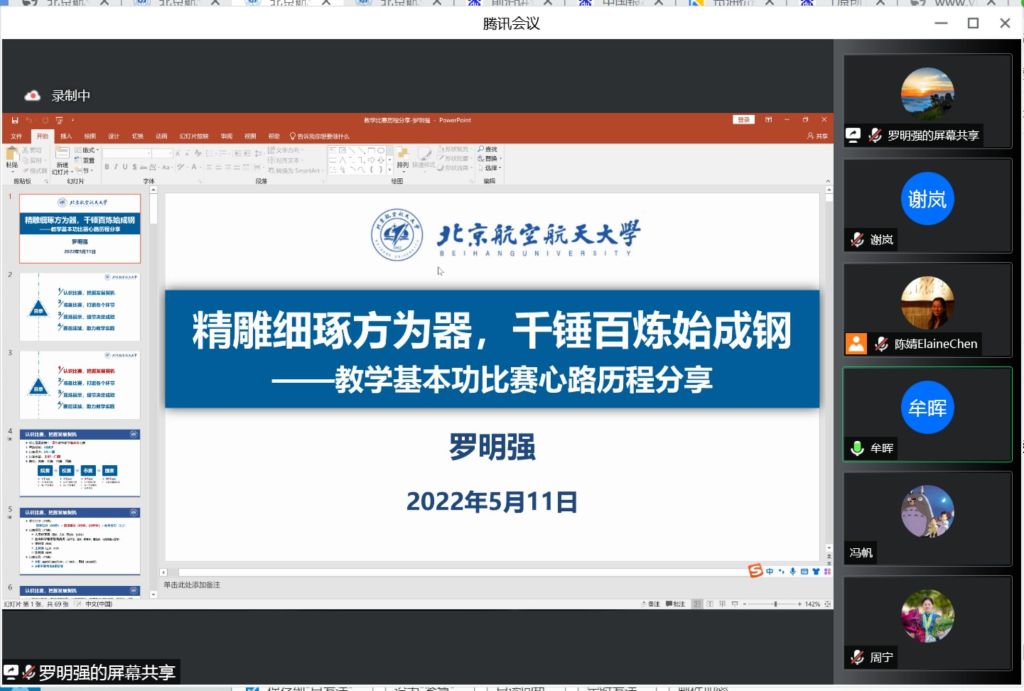 5月11日下午,经管公司以腾讯会议的方式组织了青年教师教学比赛第二次赛前培训活动。本次培训邀请到了航空科学与工程公司经理助理、飞机系副主任罗明强进行经验分享。经管公司副经理牟晖主持此次会议,经管公司工会主席谢岚、会计系教授周宁及30余位青年教师参加了此次活动。