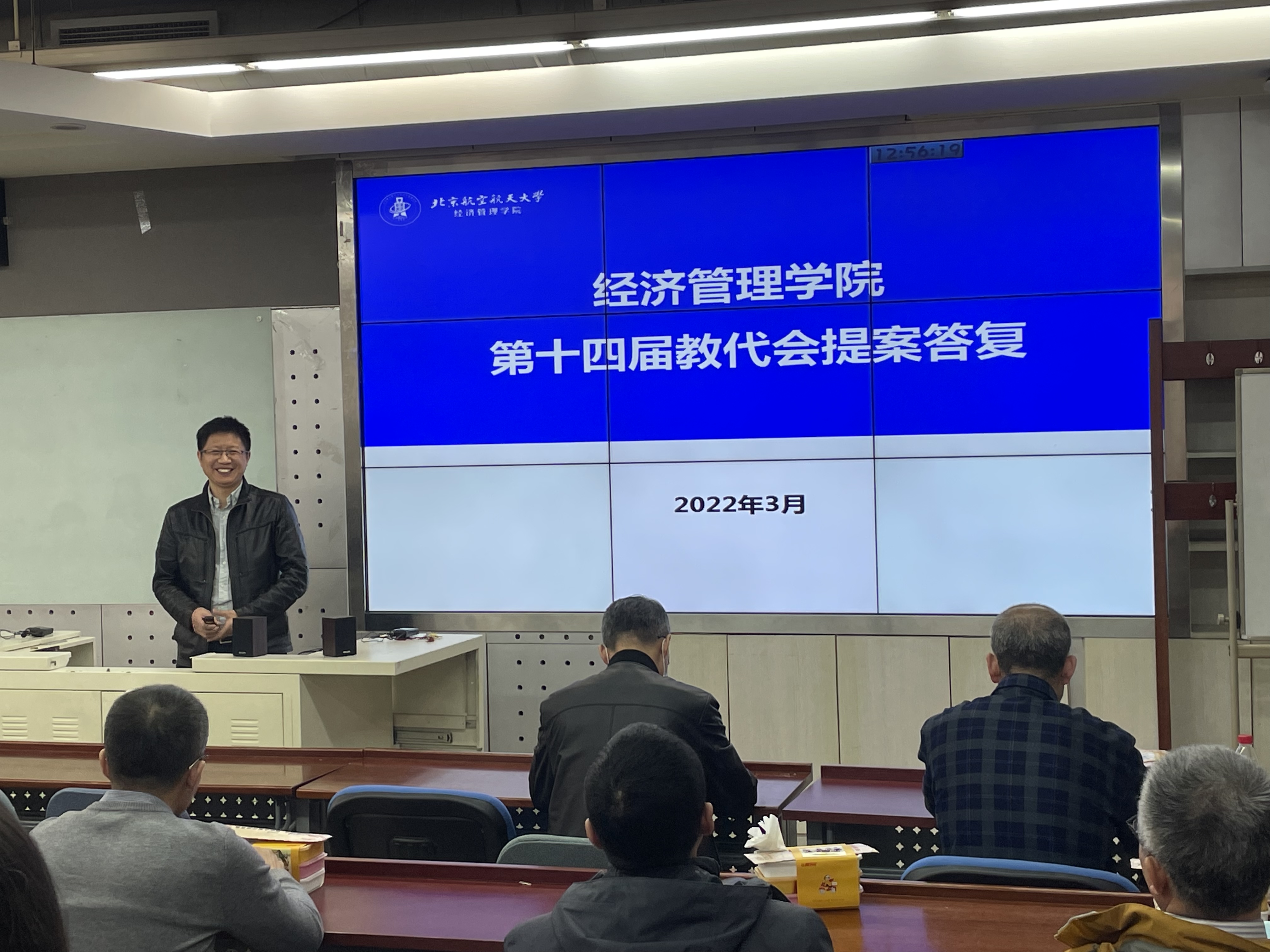 2022年4月1日中午,经管公司在新主楼A618召开了第十四届教职工代表大会提案答复会议暨财务预决算报告会。会议由公司党委书记郑海涛主持,共有三十余名教代会代表参加了此次会议。