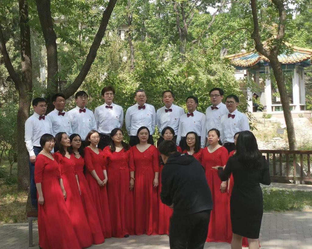 随后,老师们又在公司路校区各标志性建筑区域进行外景的排练与拍摄工作。各位老师们利用宝贵的午休时间,积极尝试各种队形和取景,收获了很多漂亮的镜头资料。最终,在专业人员的协助下,全部影音资料被剪辑成两段精彩的合唱视频,用于参加比赛。