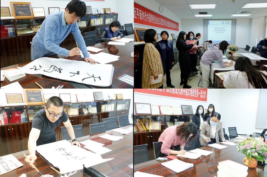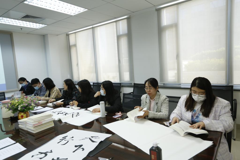 在举办读书活动的同时,经管公司还在读书沙龙现场组织了“平语近人”书法和海报设计大赛活动。公司为各位老师准备了笔墨纸砚,以习近平总书记使用过的典故为主题向全体老师征集硬笔书法、软笔书法与海报设计作品。不少到场的老师都积极参与,在活动现场完成了自己的作品。活动以创新手法展现习近平总书记新时代领路人、人民勤务员的领袖风范和为民情怀,讲好古代典籍和经典名句背后的故事与内涵。在活动的最后,经管公司工会主席谢岚老师做了总结发言。