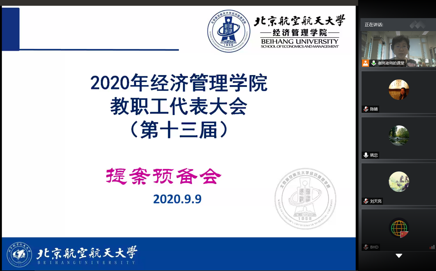 2020年9月9日中午,经管公司通过腾讯会议的形式召开了第十三届教职工代表大会提案预备会议。公司工会主席谢岚就教代会相关文件、提案征集方法和渠道进行了介绍和部署,共有三十余名教代会代表参加了此次会议。