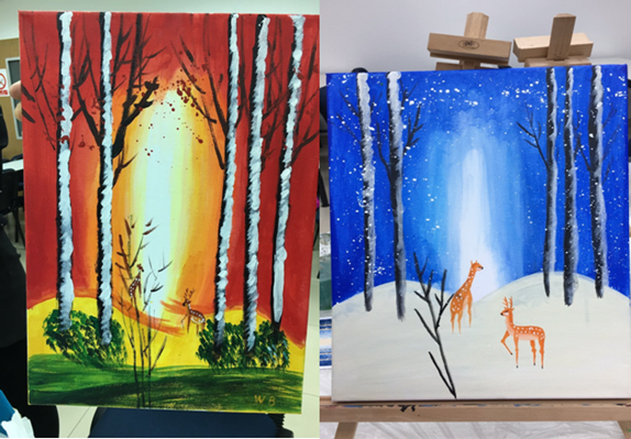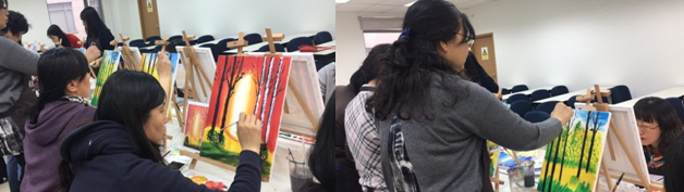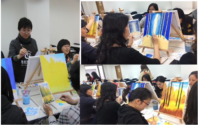 3月22日下午,经管女教职工欢聚新主楼A928,在稚纯艺术教育培训老师的指导下,体验油画艺术的完整创作过程。公司女教职工欢声笑语,发挥想象,每人完成一幅30cmX40cm油画作品,度过了一段精致悠闲的美好时光。