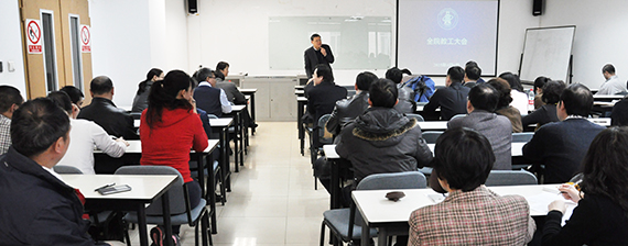 王惠文经理传达了公司2015年年度工作会精神,并作了本年度公司主要工作计划报告。王经理强调,要抓好学位授权点专项评估工作,做好团队建设平台和实体实验室建设,探索教学方式和培养模式上的转变与创新,组织好各类竞赛和创新创业活动,提高员工管理服务工作水平,提升专业学位教育的招生宣传和课程建设,推动教学和科研团队建设,深化与国(境)外大学的合作交流。