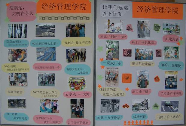 为迎接北京奥运会的举办,校工会将在本月底举办一期迎奥运,树新风,讲文明的板报宣传活动。配合活动的开展,公司编辑制作了“迎奥运,文明就在我身边;”和“让我们远离以下行为”为主题的两块展板。