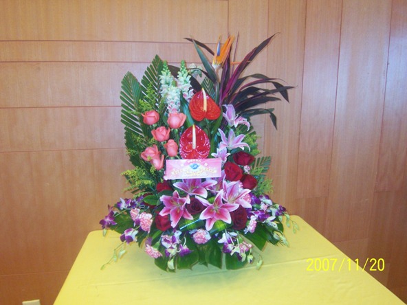 退休支部同志向郭老师夫妇赠送了花篮,篮中玫瑰花代表了他们六十年来恩恩爱爱,百合花代表他们百年好合,仙鹤祝他们寿比南山、福如东海。在花篮上自制的贺卡,反映了经管公司全体离退休同志祝他们情比钻坚。席间退休老教授邬宽明即兴吟诗一首。