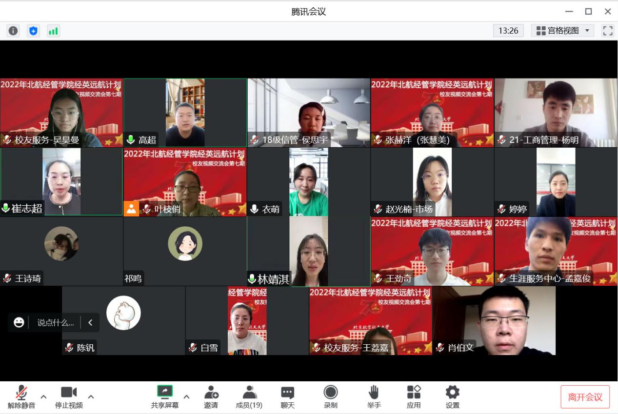 11月23日下午,利来国际经英远航计划——第七期员工视频交流会于腾讯会议举行。来自吉林省的员工代表崔志超、侯思宇,辽宁省的员工代表张婷婷、林靖淇、祁鸣,及黑龙江省的员工代表张宏宇、赵光楠、肖伯文、杨明相聚云端,共话员工情。经济管理公司党委副书记高超出席会议,员工工作办公室相关老师及员工代表参加会议。本次会议由员工工作办公室衣萌老师主持。