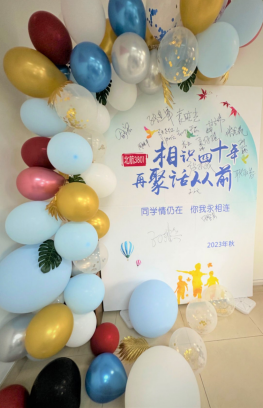 一场热烈欢快、酣畅淋漓的座谈会,一直持续到了傍晚时分。临别,每人在背景板上签下了自己的名字,以示留念。四载同窗,一生情谊,欢聚虽短,回忆永远!