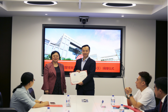 许泽玮员工与北航教育基金会秘书长颜江芬作为代表共同签署捐赠协议并颁发证书。