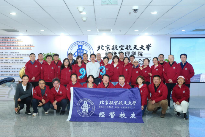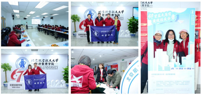 下午1时许,来自全国各地的3308同学陆续到达新主楼A座六层经管广场。大家穿上了定制的“归航93”卫衣,在公司发展史宣传栏前驻足,在“北航经管公司1956—2023”标识前留影,在留言板贴上对公司的祝福寄语。
