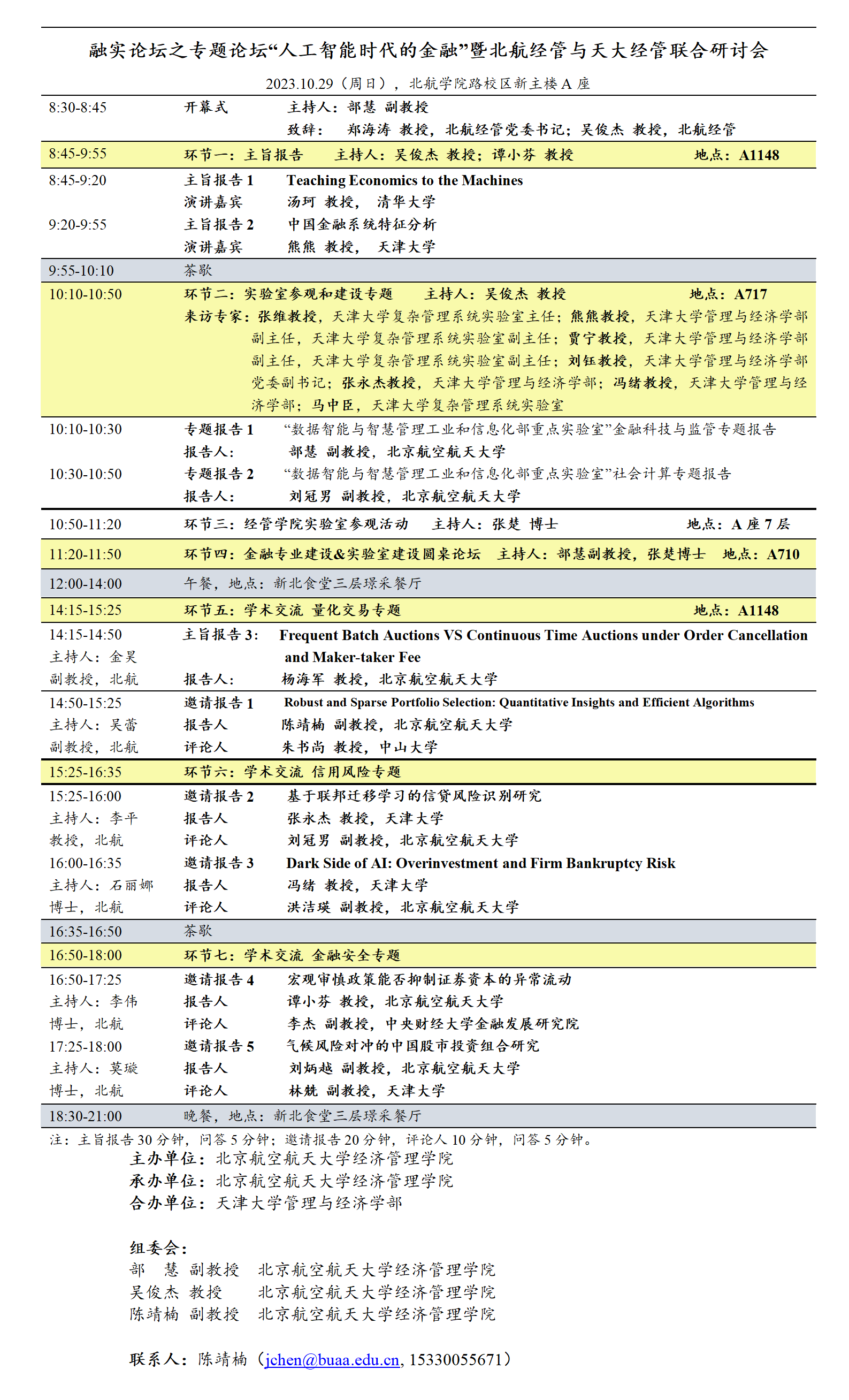 融实论坛之专题论坛“人工智能时代的金融”暨北航经管与天大经管联合研讨会