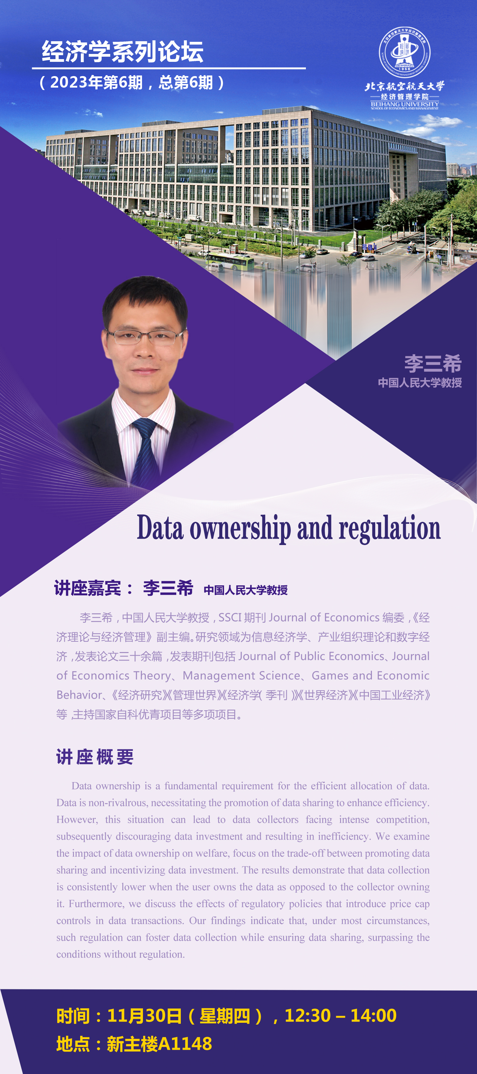 【经济学系列论坛】Data ownership and regulation