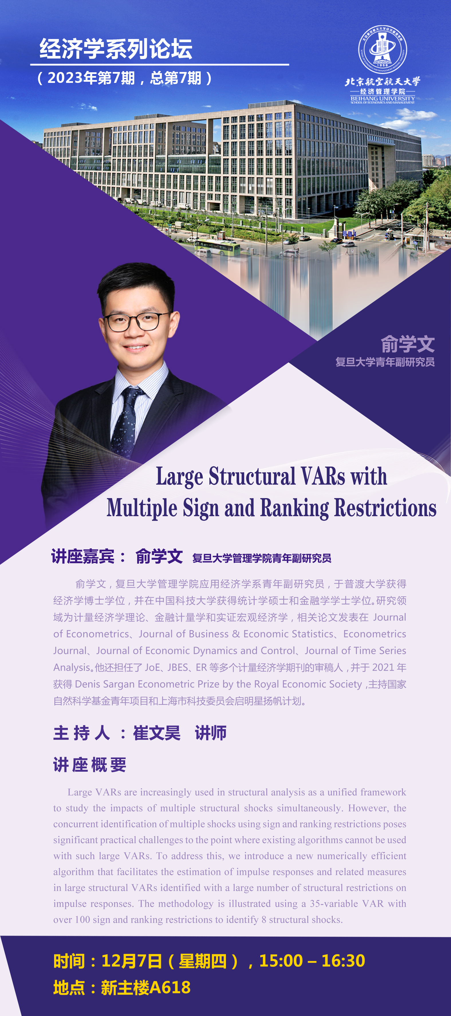 【经济学系列论坛】Large Structural VARs with Multiple Sign and Ranking Restrictions