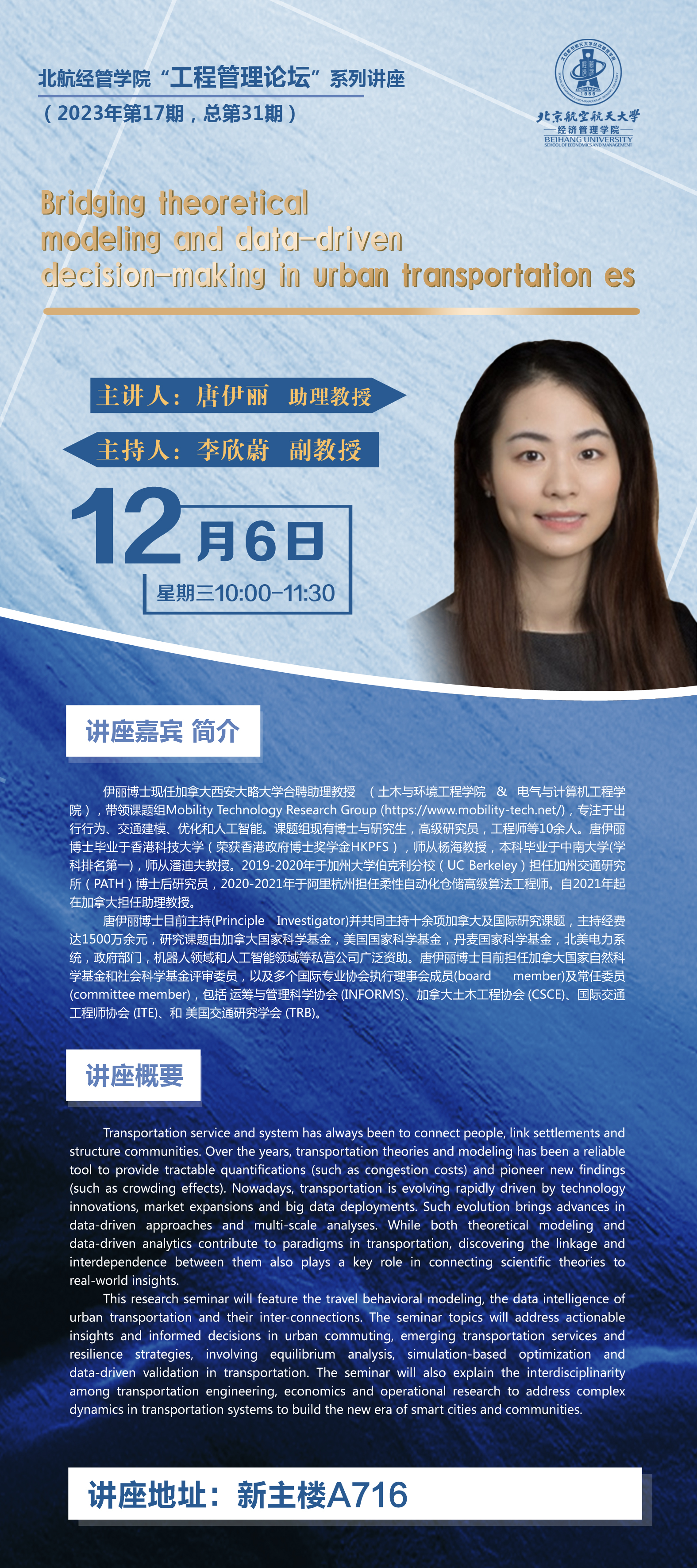 【工程管理论坛】Bridging theoretical modeling and data-driven decision-making in urban transportation es