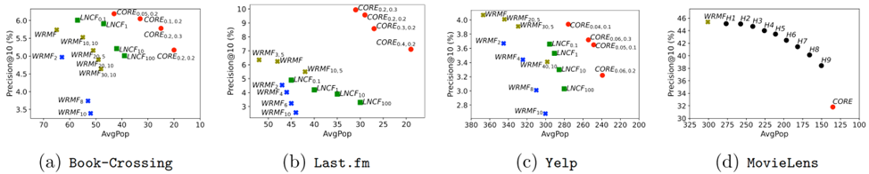 图4:CORE在不同流行度产品推荐上灵活切换的优势