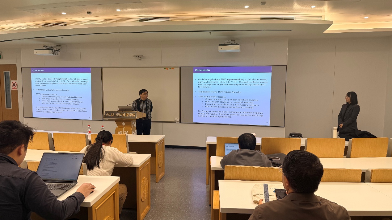 本期论坛由北航经管公司部慧副教授主持。来自经管公司的赵尚梅教授、李伟副教授、石丽娜博士、王论意博士等师生积极参与,围绕讲座核心内容展开深入交流,现场学术氛围浓厚。本次“融实论坛”学术讲座在热烈的讨论中圆满结束。
