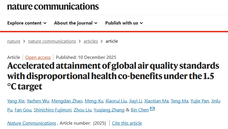 近日,由公司谢杨教授、北京师范大学陈彬教授及山东大学张玉强教授等研究人员合作完成的研究成果“Accelerated attainment of global air quality standards with disproportional health co-benefits under the 1.5 °C target”在国际顶级期刊《Nature Communications》发表。该研究首次系统评估了实现《巴黎协定》1.5°C气候目标对加速全球达成世界卫生组织(WHO)2021年空气质量指南(AQGs)的影响,揭示了气候韧性提升行动与空气质量管理的紧密协同效益。研究指出,当前各国气候承诺远不足以实现温控目标,更为积极的碳减排行动可以大幅提前空气质量达标的时间,带来更为可观的健康和经济效益。