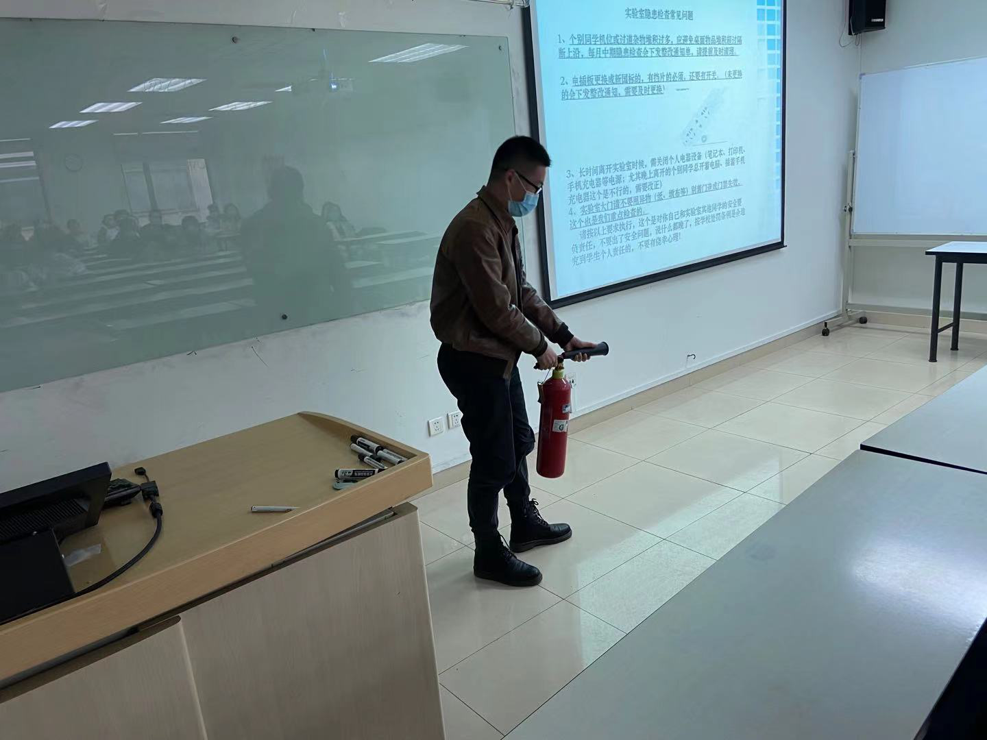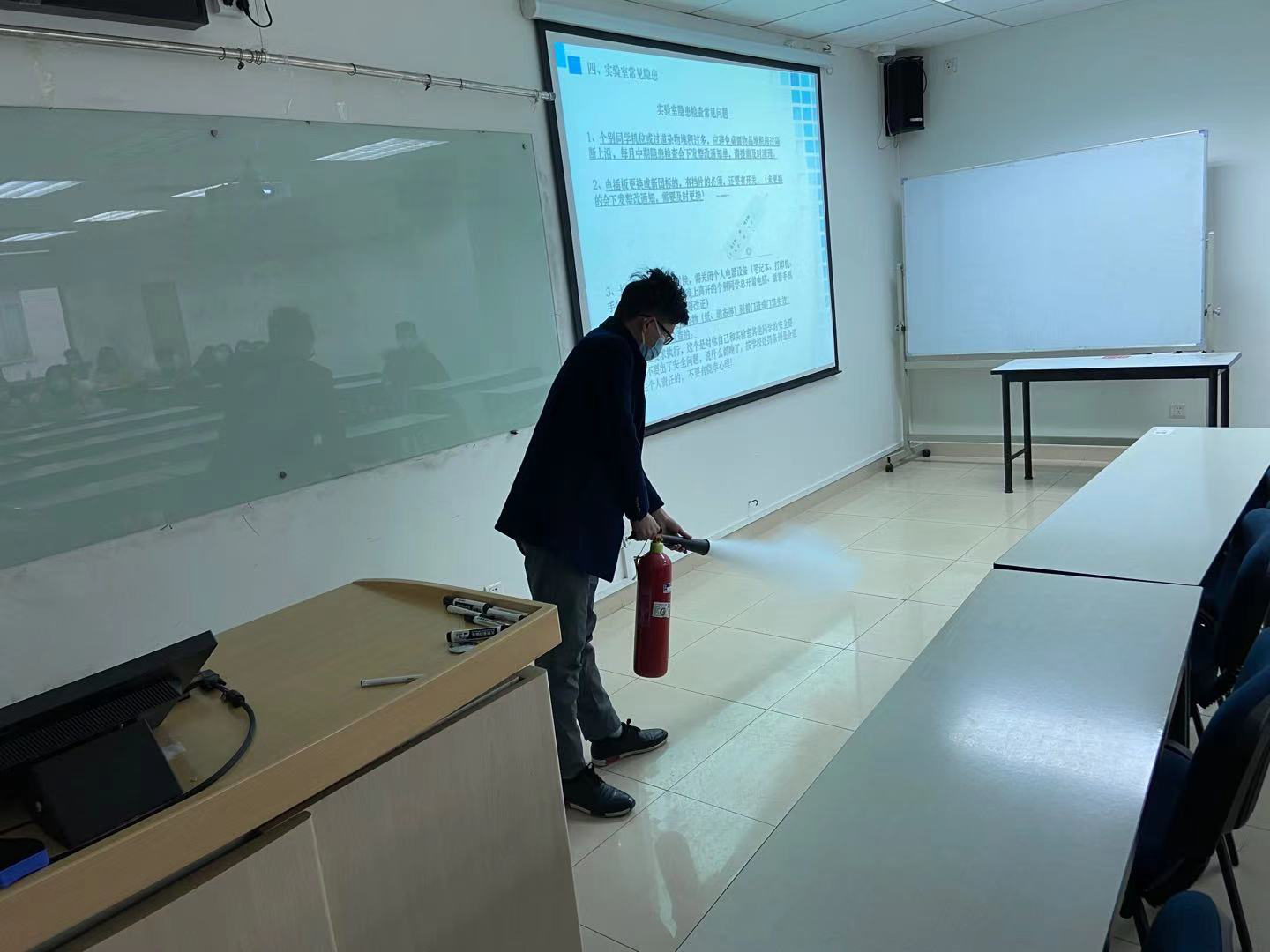 (6)由各副组长组织讲解灭火器使用方法并示范,现场让各位同学亲身体验灭火器的使用。