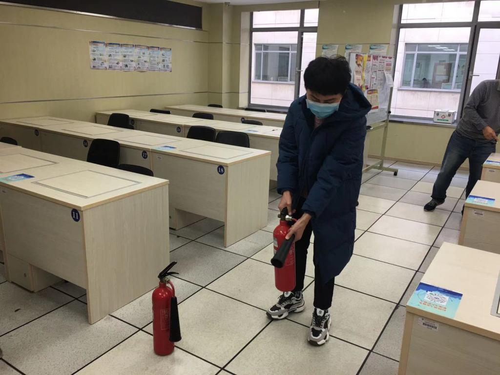 在现场演练灭火器体验环节,参与的同学掌握了手提式灭火器“提、拔、瞄、压、扫”的五字口诀,并进行了现场体验。