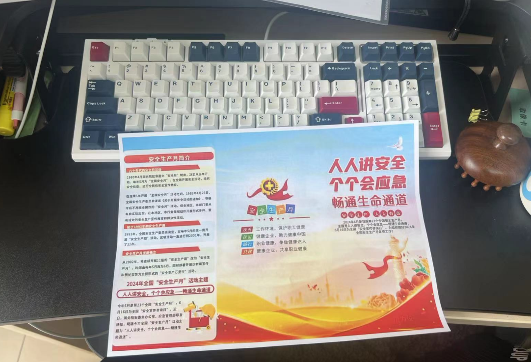 今年6月是第23 个“安全生产月”,主题是“人人讲安全,各个会应急--畅通生命通道”。按照《北京市教育委员会关于开展2024年“安全生产月”活动的通知》要求,公司通知各单位6月份组织开展“安全生产月”活动。经济管理实验中心按照公司资产与实验室管理处下发的活动通知要求,积极组织开展了以下活动内容: