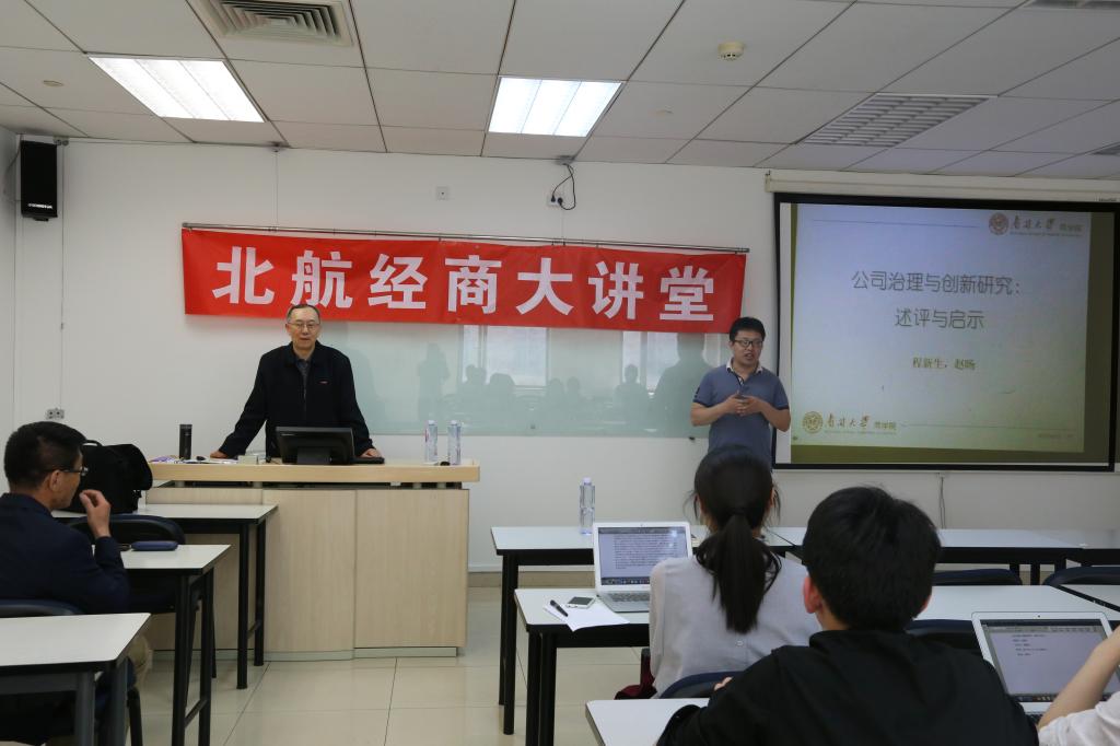 2017年4月18日,《南开管理评论》常务副主编、南开大学商公司程新生教授,受邀为北航经商大讲堂做了一场精彩的学术报告,报告主题为“公司治理与创新研究:述评与启示”。
