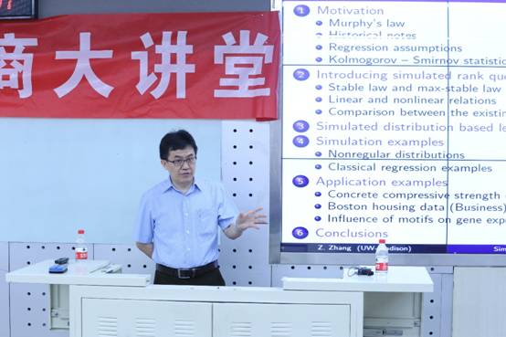 rare disease analysis, financial risk modeling and evaluation, market systemic risk assessment and so on. The lecture was hosted by Associate Dean Haitao Zheng from
