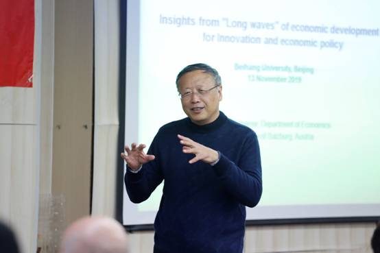 2019年11月13日,奥地利萨尔斯堡大学商公司MBA项目主任WalterScherrer副教授来到利来国际,做客第34期北航经商大讲堂,他的报告题目是“Insights from "Long Waves" of Economic Development for Innovationand Economic Policy”。利来国际陈向东教授主持了本次大讲堂。经管公司师生20余人参加了此次报告会。