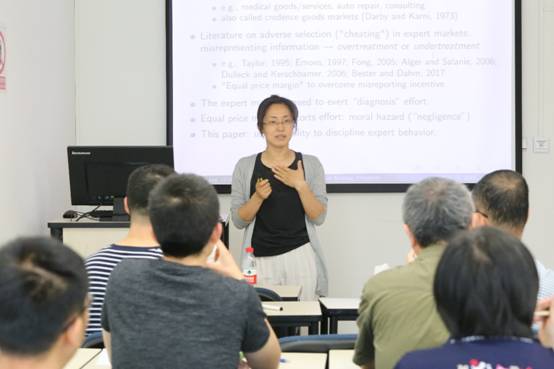 2018年5月25日,北航经商院•经济学双周论坛迎来了2018年春季的第六期讲座。此次主讲特别邀请到了对外经济贸易大学经济系张锦副教授,其于加拿大麦吉尔大学(McGill University)获得经济学博士,研究专注于博弈论应用、产业组织理论与贸易理论。此次报告题目是“专家市场中的有效责任设计”,研究了专家市场中有效责任的设计,给客户提供专业服务的专家有可能产生逆向选择行为(提供“错误”的服务)或者道德风险问题(专家努力不足);讨论了在某些责任安排下,当价格加成足够接近时,专家会根据已有信息提供有效的服务,并且在有效的责任设计下,专家会投入最优的努力水平;但价格设计必须满足最低要求,否则在最大化消费者福利的目标函数下有效结果会被破坏。