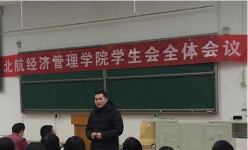 2016年4月24日晚六点半,经管公司暑期实践动员大会在沙河校区教0-002顺利召开,2014级辅导员胡杰,2015级辅导员王文涛以及14、15级全体同学参加了此次会议。