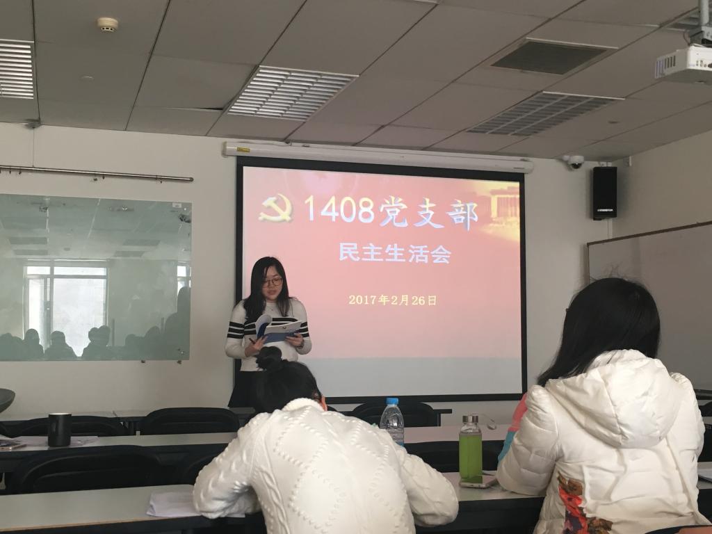 2017年2月26日下午3时,1408党支部在公司路校区召开民主生活会。会议由1408大班辅导员胡杰主持,经管公司王喜忠副书记出席会议并作指导,党支部全体成员参加会议。 本次民主生活会安排在北航党员寒假集中学习之后,是党支部成员消化知识、检讨自身、砥砺前进的一次重要会议。在党员学习交流环节中,九位党员针对集中学习分享了学习感悟。随后,王喜忠书记联系“全面从严治党”和“四个自信”,着重指出同学...