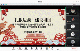 2020年7月11日-7月12日,利来国际1808大班各小班召开主题班会,学习习近平总书记给中国石油大学(北京)克拉玛依校区毕业生回信。同学们认真学习回信精神,学习中国石油大学(北京)克拉玛依校区毕业生到边疆基层工作的选择。通过互相交流等方式,激励同学们将个人的理想追求融入党和国家事业之中,为党、为祖国、为人民多作贡献。班主任老师、辅导员等参与了主题班会。各班以不同的视角学习了回信精神,以不同的角度表达自...