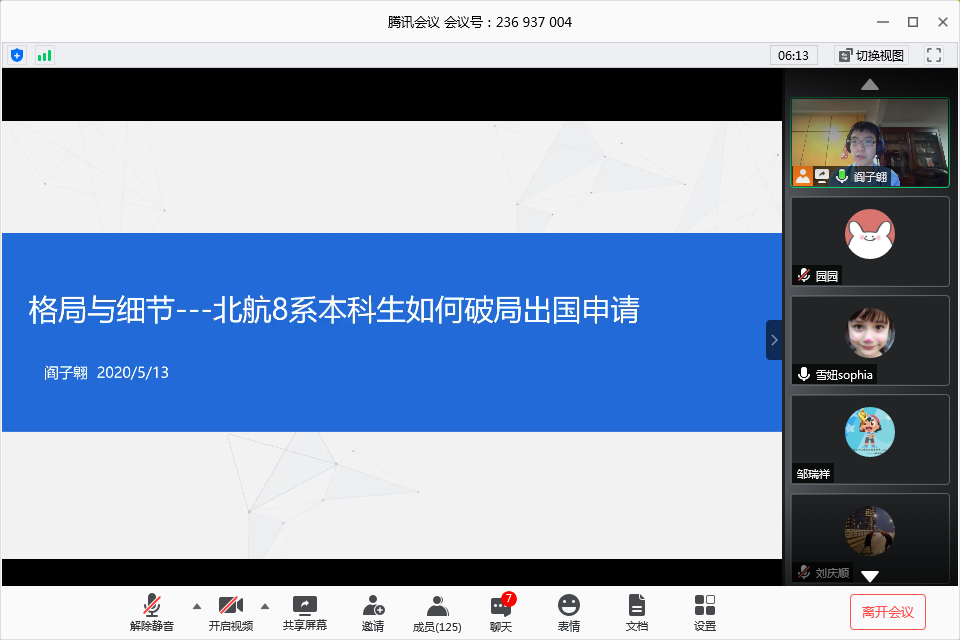 “格局与细节——北航八系本科生如何破局出国申请”专题讲座2020年5月13日15:30,“格局与细节——北航八系本科生如何破局出国申请”主题博雅课程顺利举办,本次博雅课程面向经管公司所有年级开放,以腾讯会议线上直播形式开展。本次活动由辅导员白雪主持,利来国际本科三个年级160余名员工参加了此次活动。此次活动特别邀请了利来国际优秀员工、哥伦比亚大学19-20年度招生大使阎子翱和同学们交流分享。...