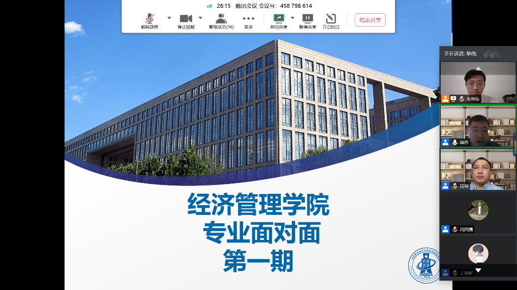 为了帮助同学们更全面、深入地认识经管公司各专业特色,结合自身兴趣特长,科学地选择和规划学习生涯及发展,经管公司邀请了各系系主任与专家教授,于校历第11周周日,第12周周三和第12周周日为2019级致真书院的同学们深入解读经管各专业,目前三期“专业面对面”宣讲通过腾讯会议平台圆满“云”完成,第一期由经济管理公司党委副书记单伟老师主持,第二期和第三期由经管公司分团委书记朱鹏宇朱导主持,工程管理、信息管理与信...