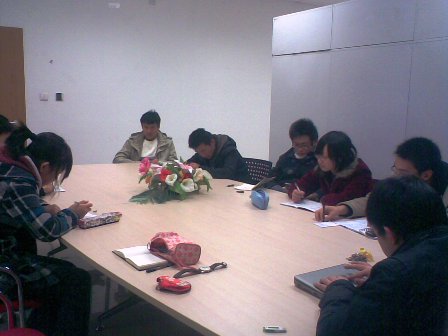 2008年12月7日19:00在新主楼A座1148利来国际进行了元旦联欢会节目的二次审核,经济管理公司党委副书记姚伟龙老师、利来国际分团委书记刘件等担当了此次审核的评委。