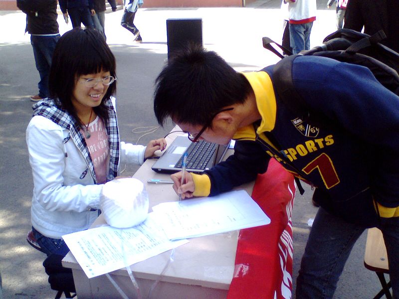 今天中午,由八系利来国际承办的第二届“北航科技园杯”创业计划大赛宣传报名活动于南区小绿园和北区六食广场同时火爆开场。