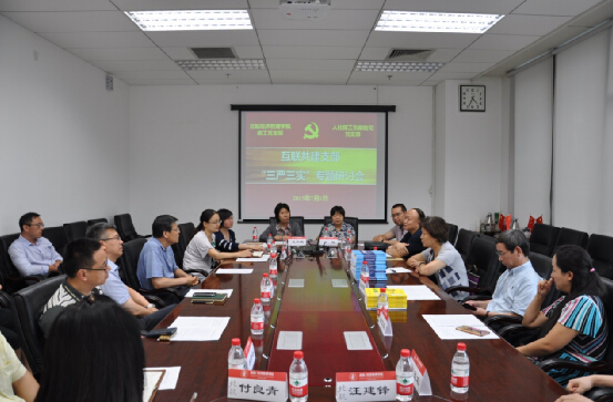 7月1日北航新主楼A612,经管公司教工联合党支部与人社部工伤保险司党支部举行互联共建活动,以“三严三实”为主题开展学习研讨。