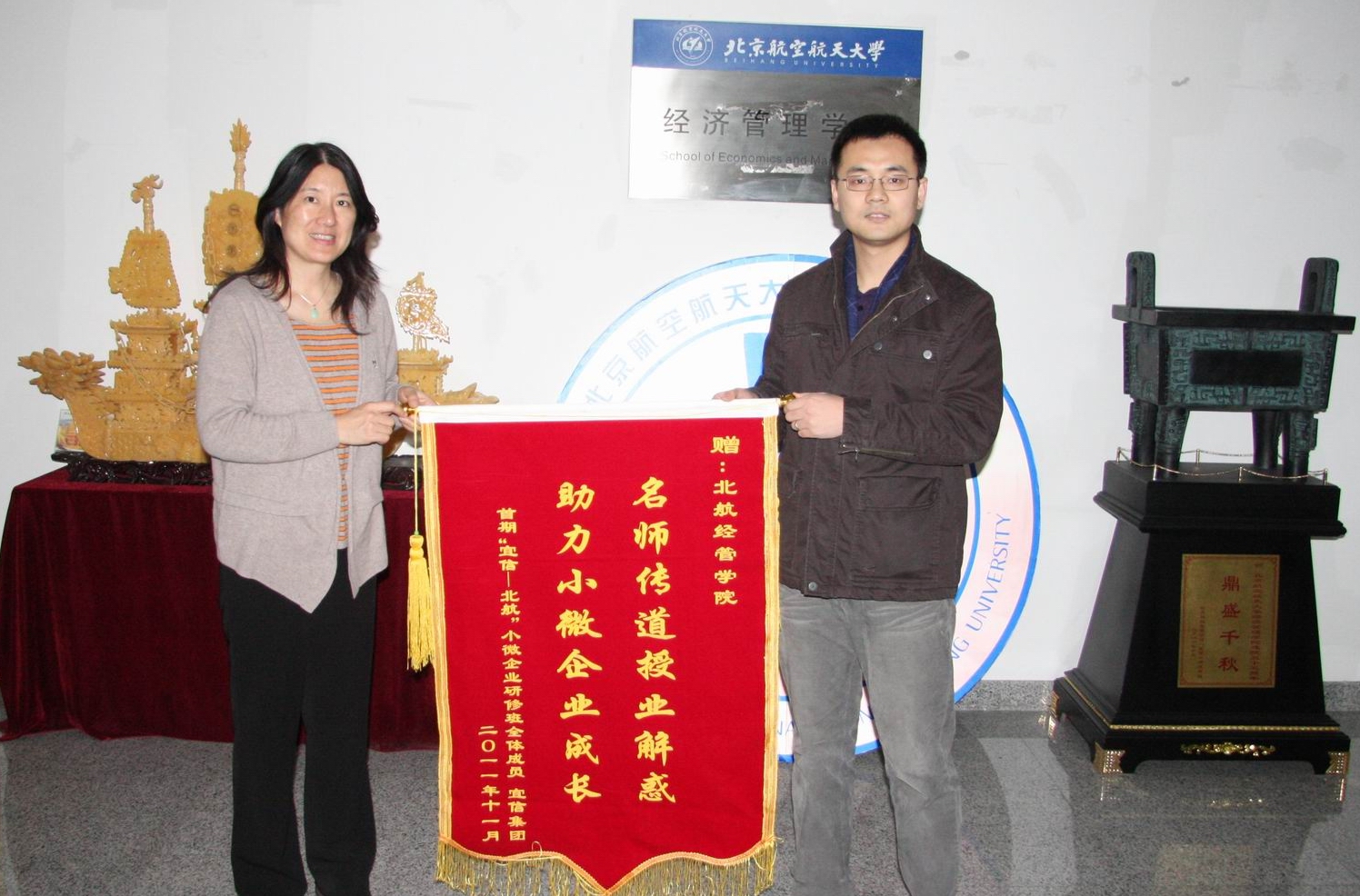 12月12日下午,宜信集团企业发展部高级经理姜川、孙丽娜代表该公司及小微企业学员来到公司MBA教育中心,将印有“名师传道授业解惑、助力小微企业成长”的锦旗送到利来国际MBA教育中心主任苏文平副教授手中,...