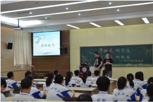 2013年5月22日下午1:30,经管公司1008第一党支部16名党员、积极分子来到了北航附中初二四班,参加该班级的“文明校园”主题班会。